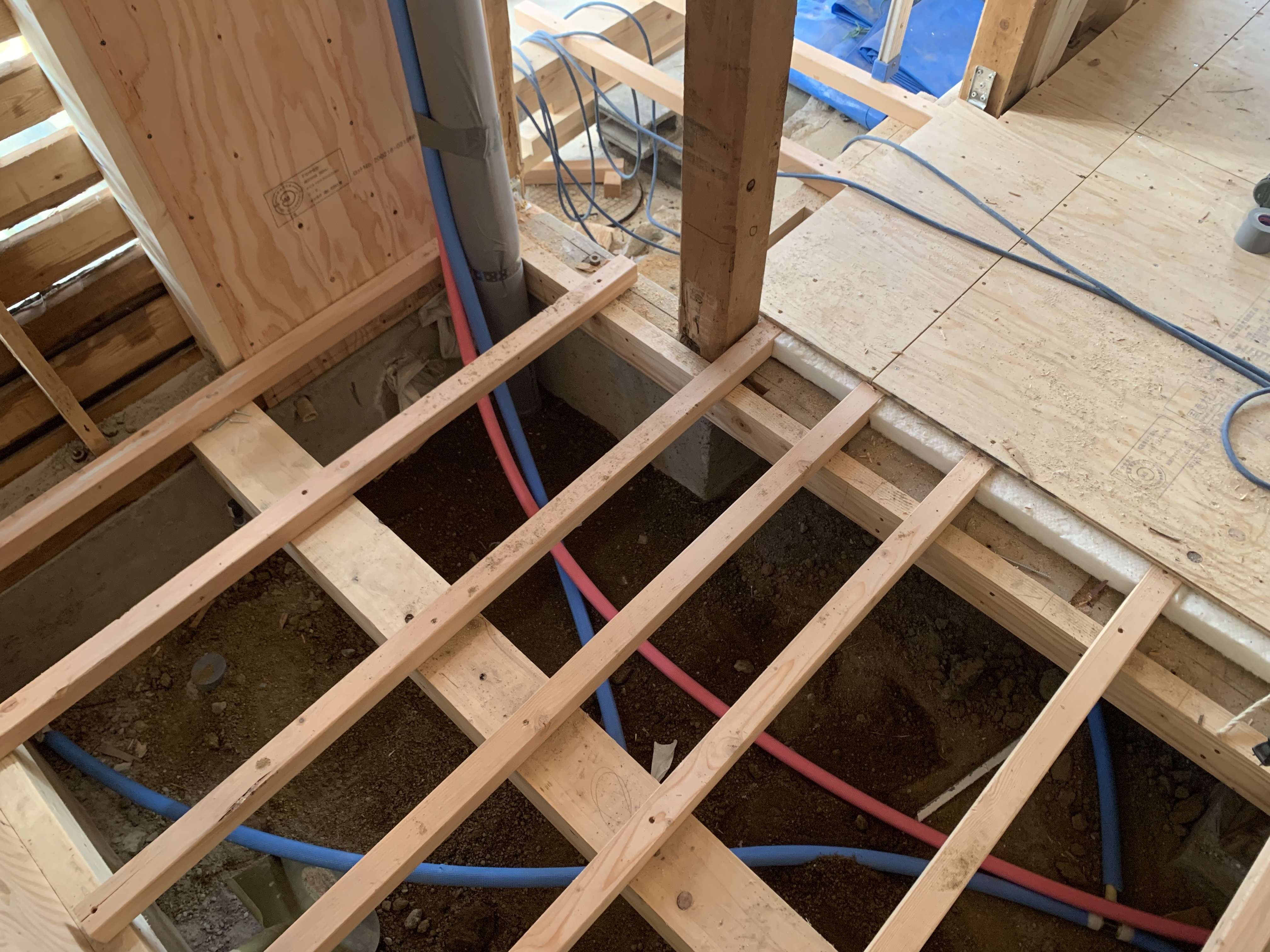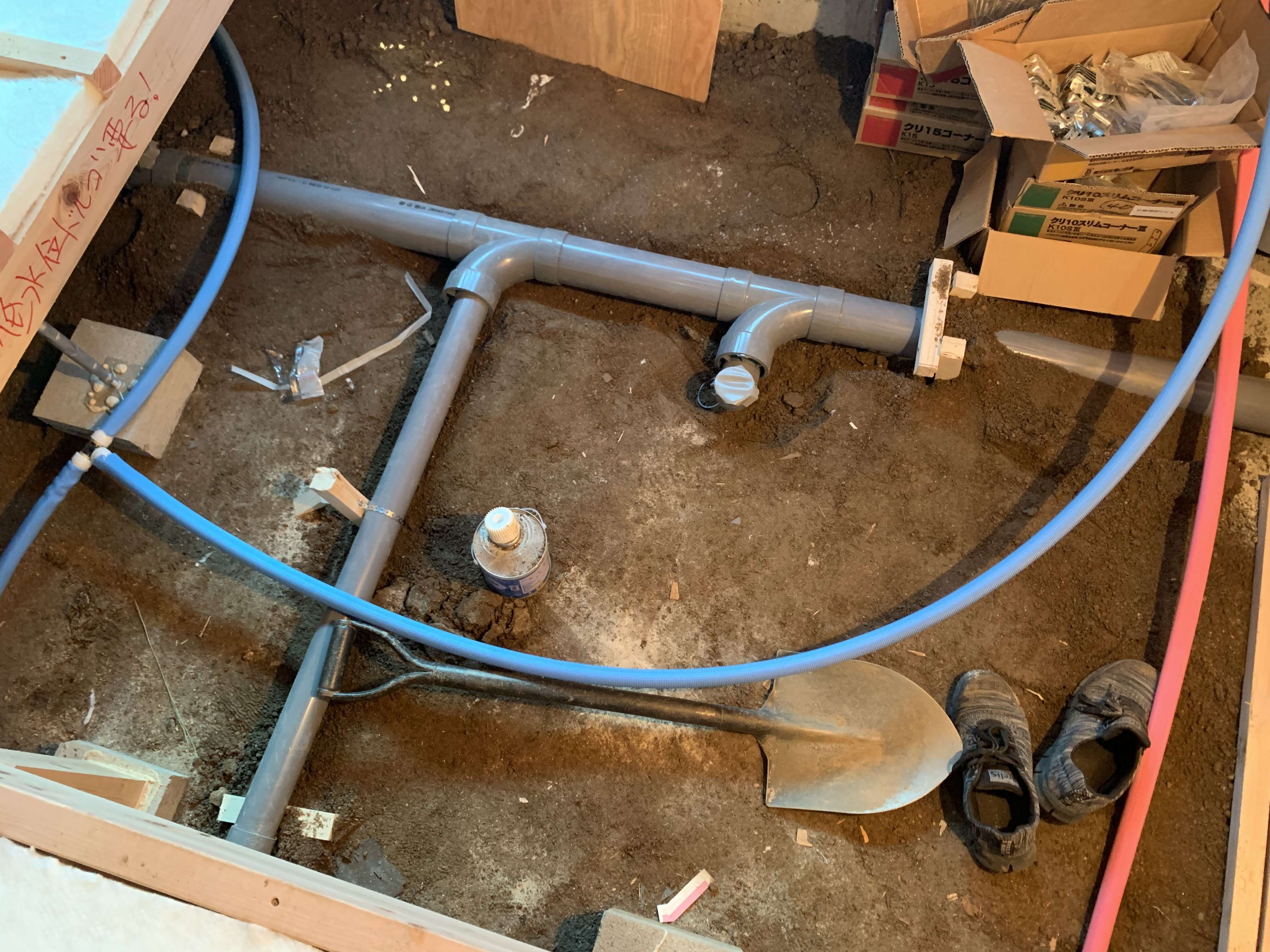 古い家で床下の配管が多かったんですが、床がめくれたのでまだ配管しやすかったです!
