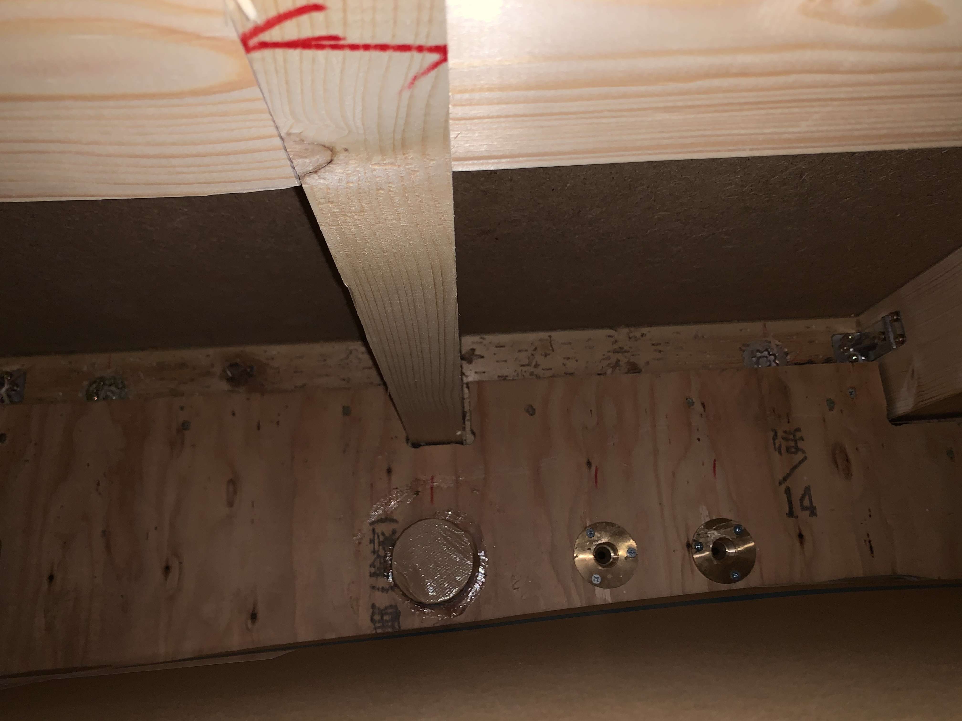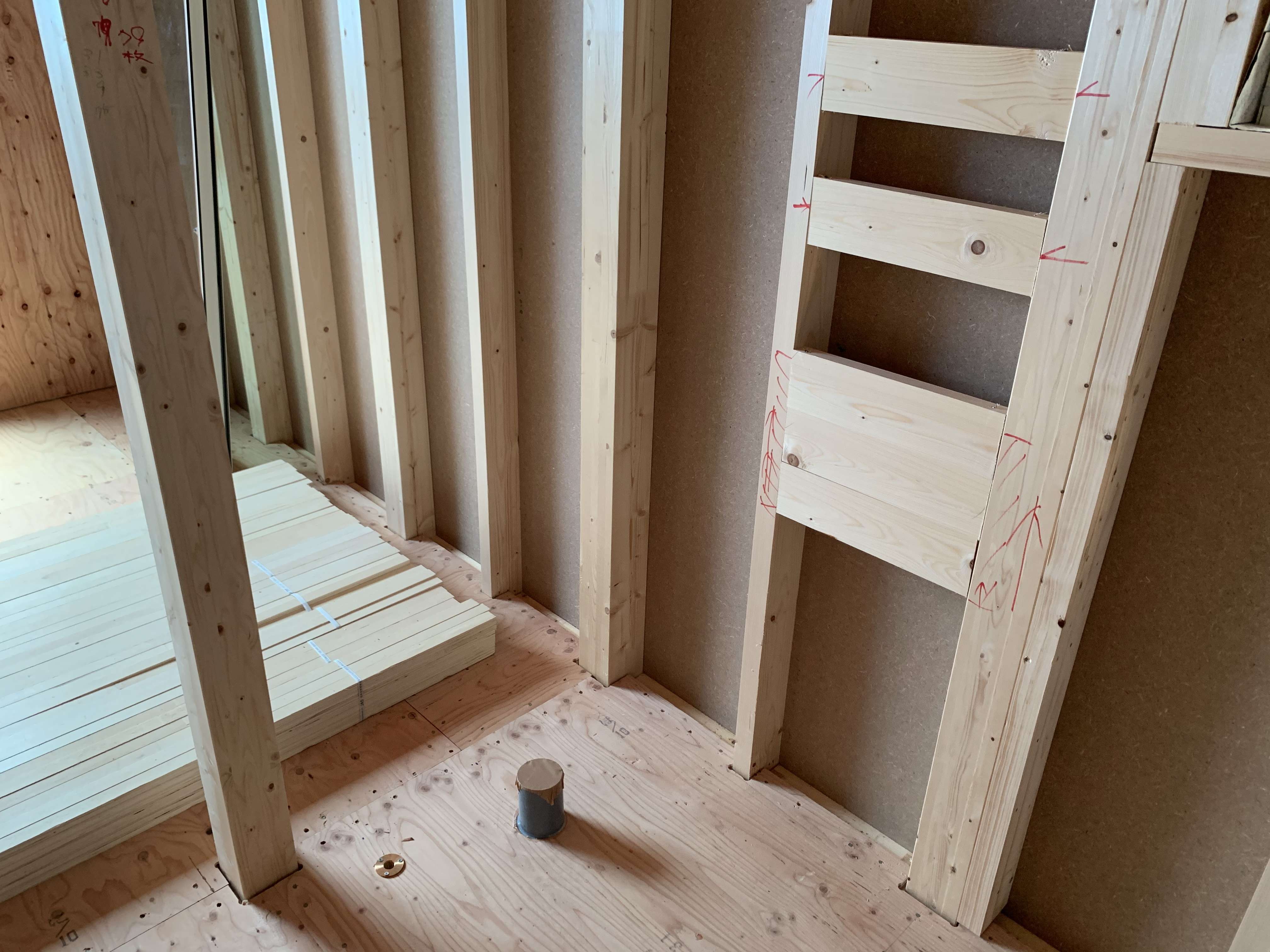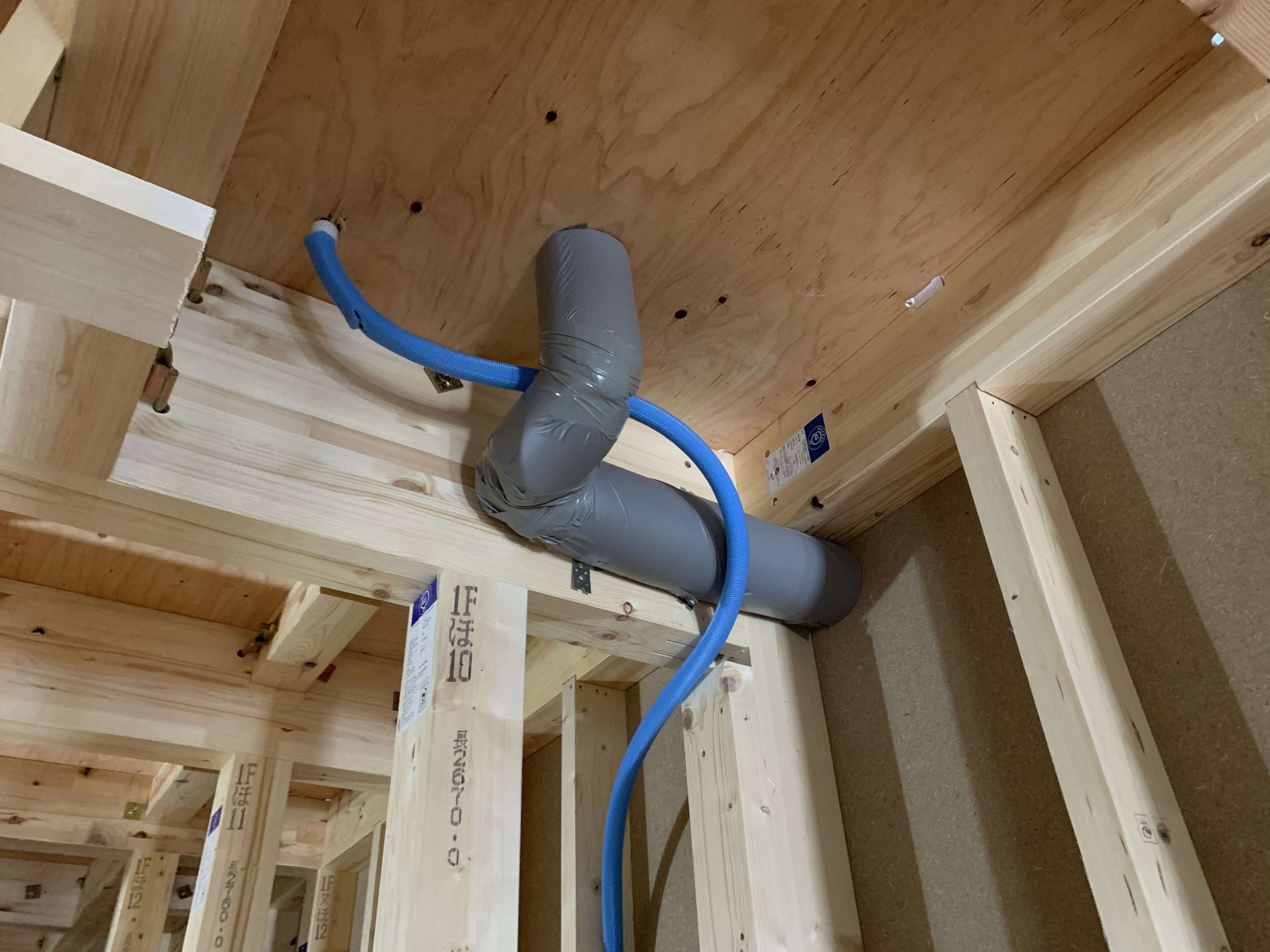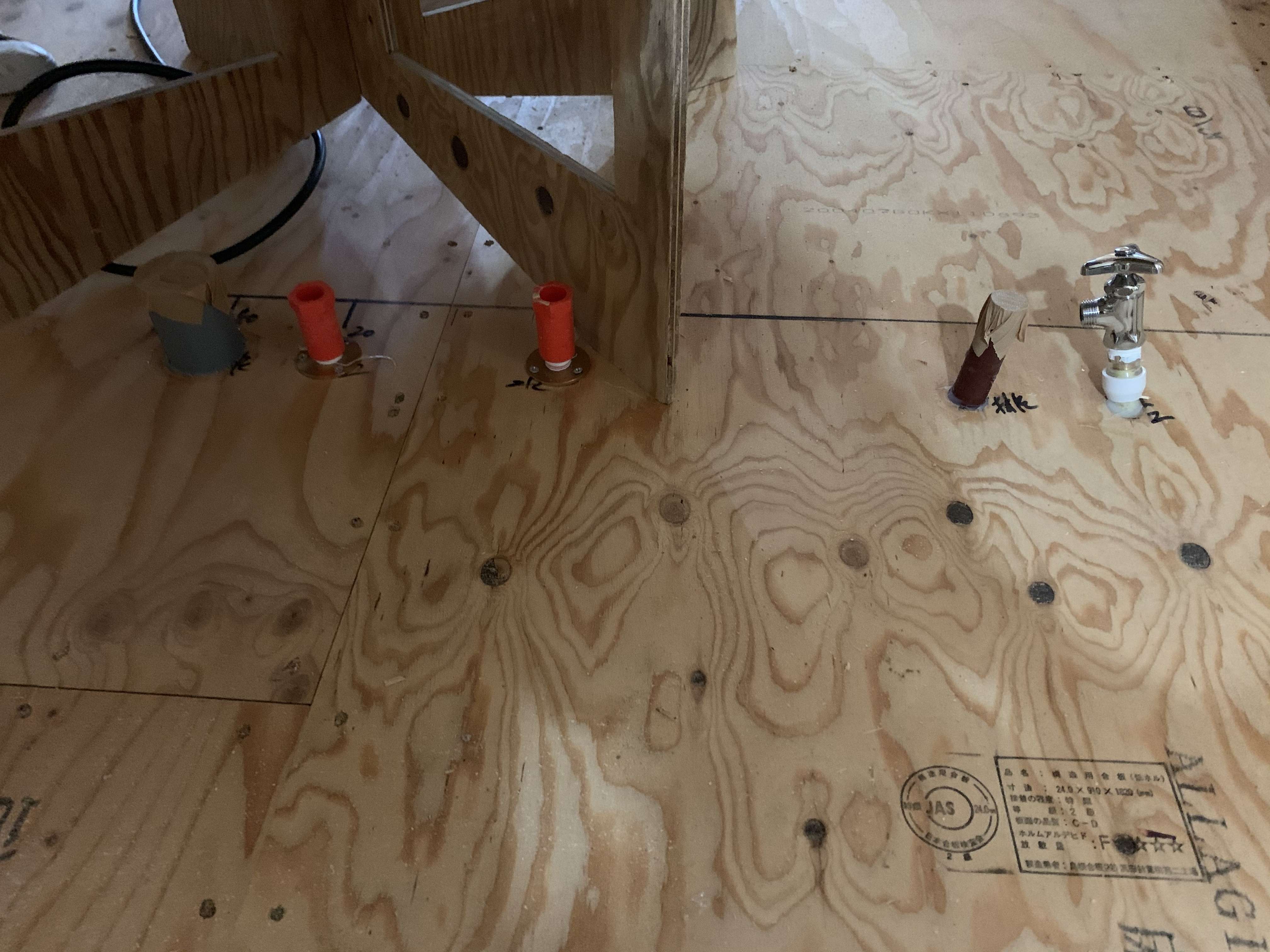 墨出ししてから穴開けをして床下で配管を立ち上げます!