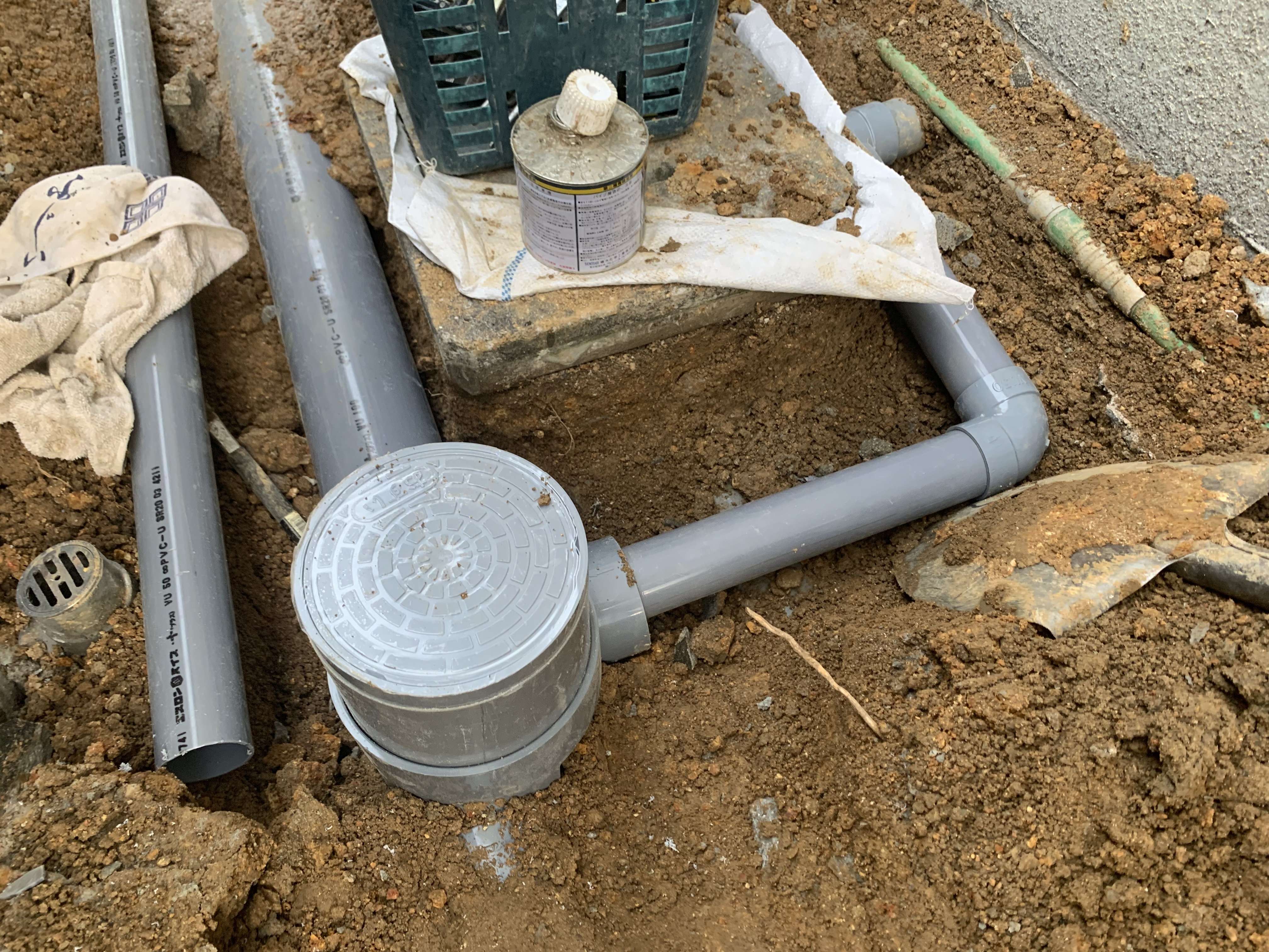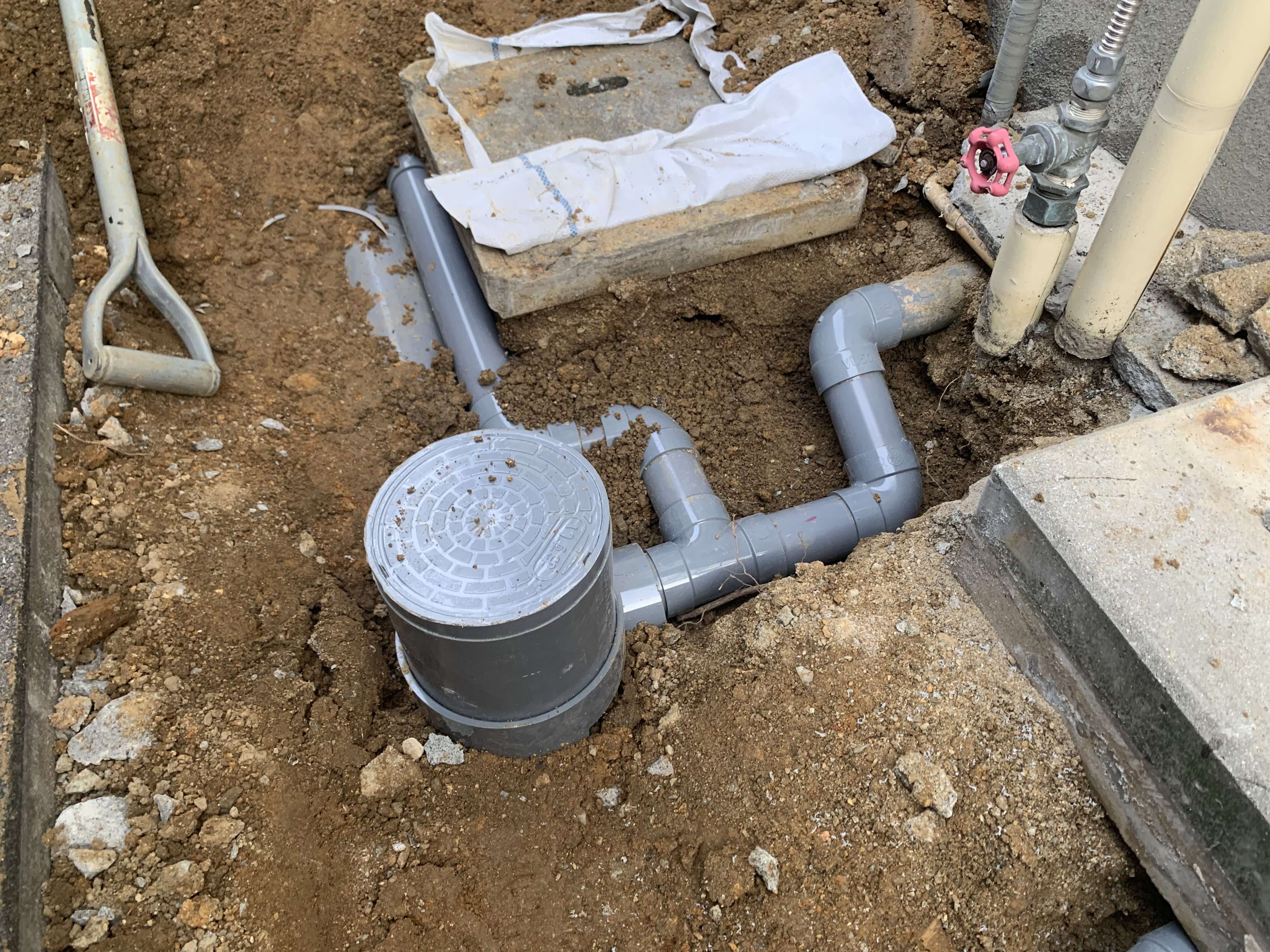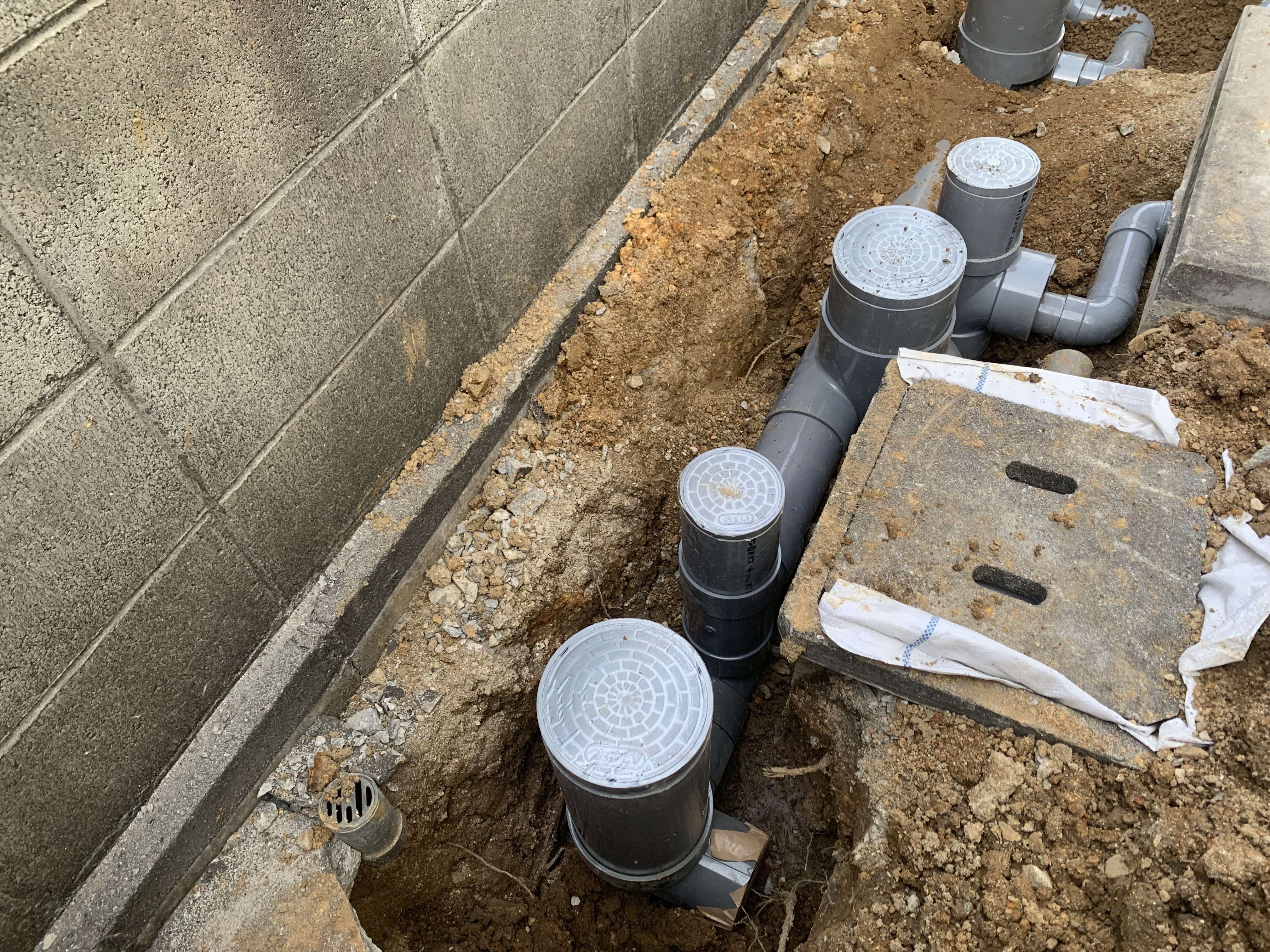 トイレ以外を会所で取っていたので、キッチン、雑排水を繋ぎ変え雨水の配管として会所は残しました!