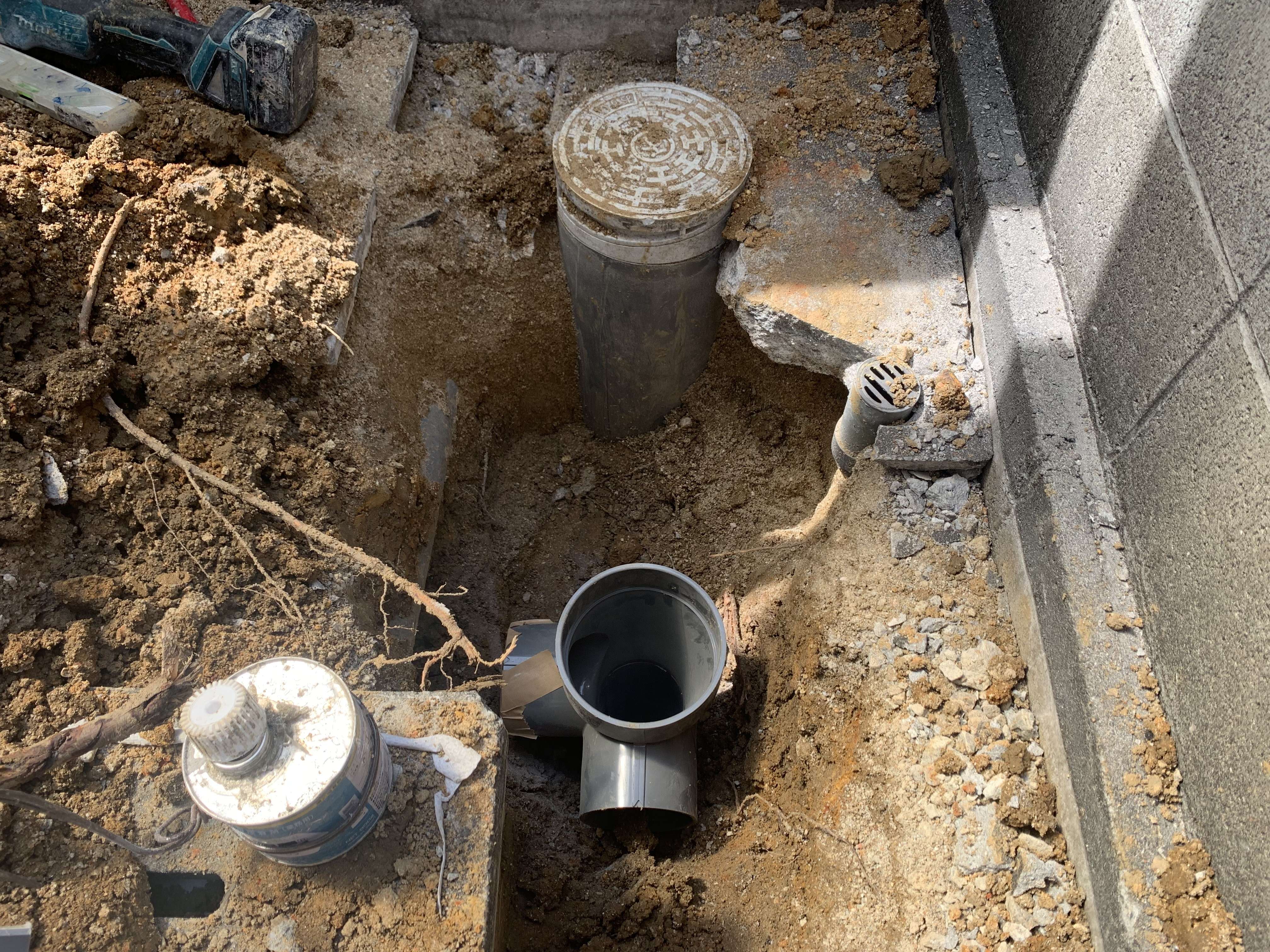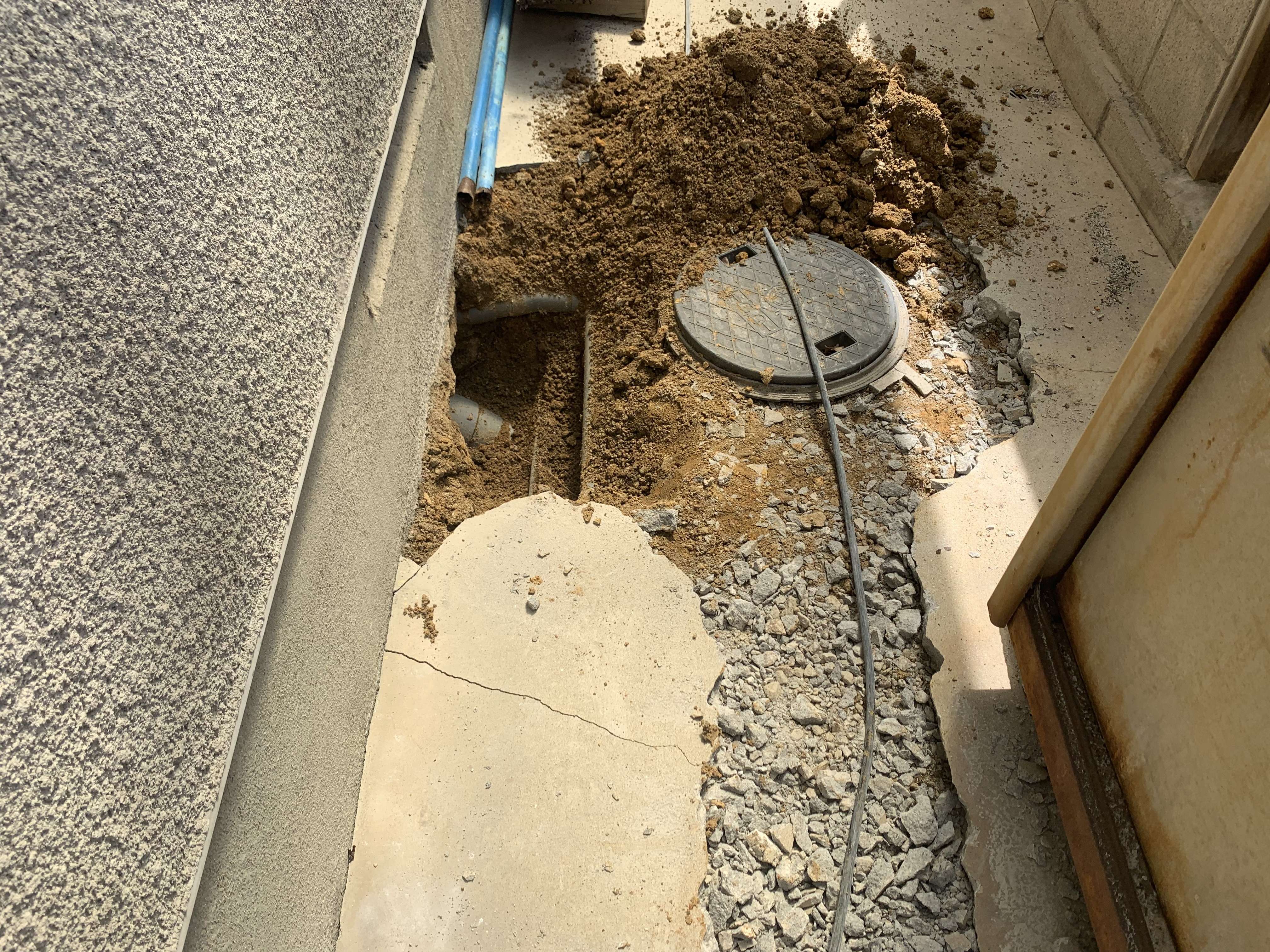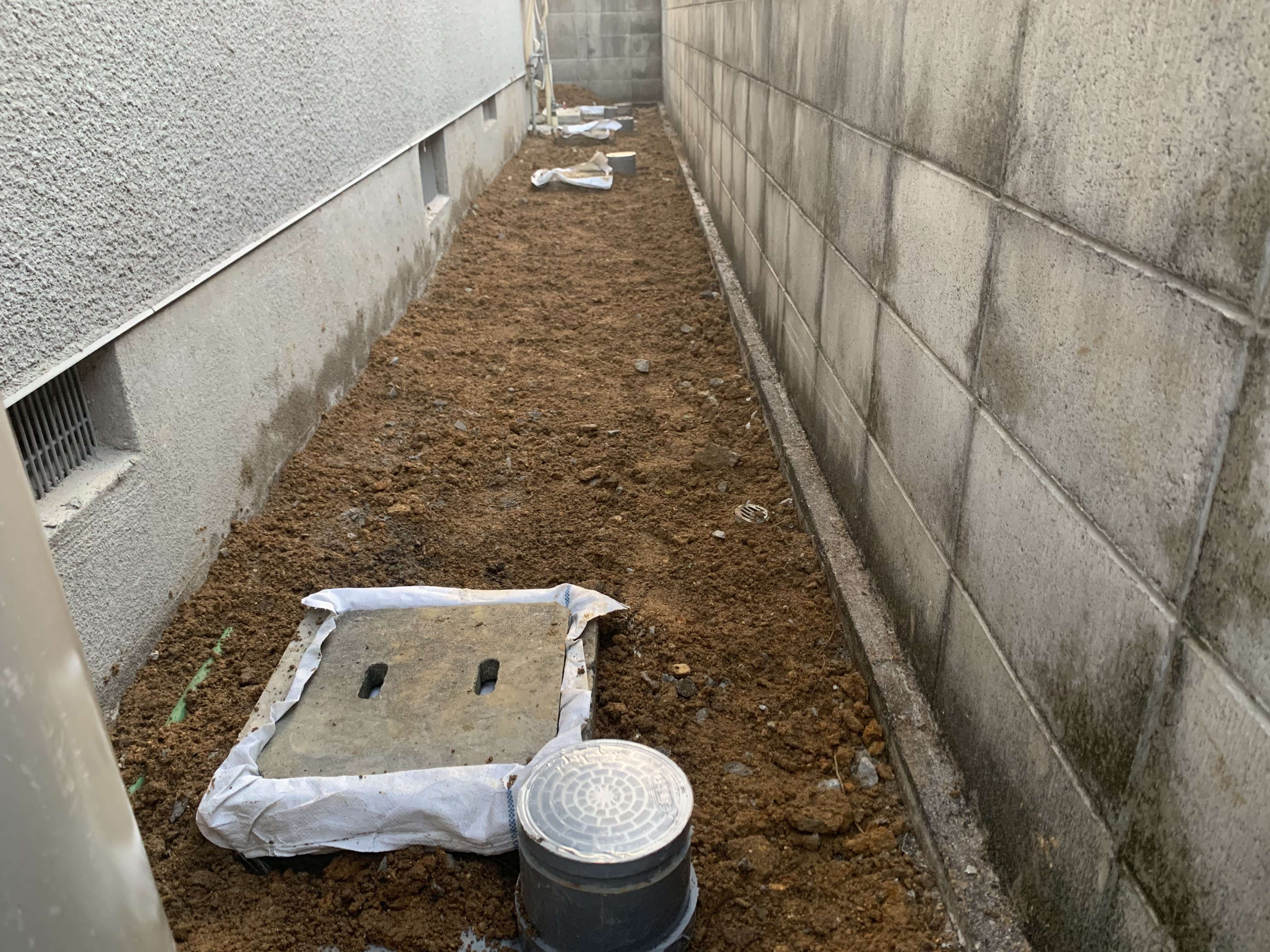トイレ以外を会所で取っていたので、キッチン、雑排水を繋ぎ変え雨水の配管として会所は残しました!