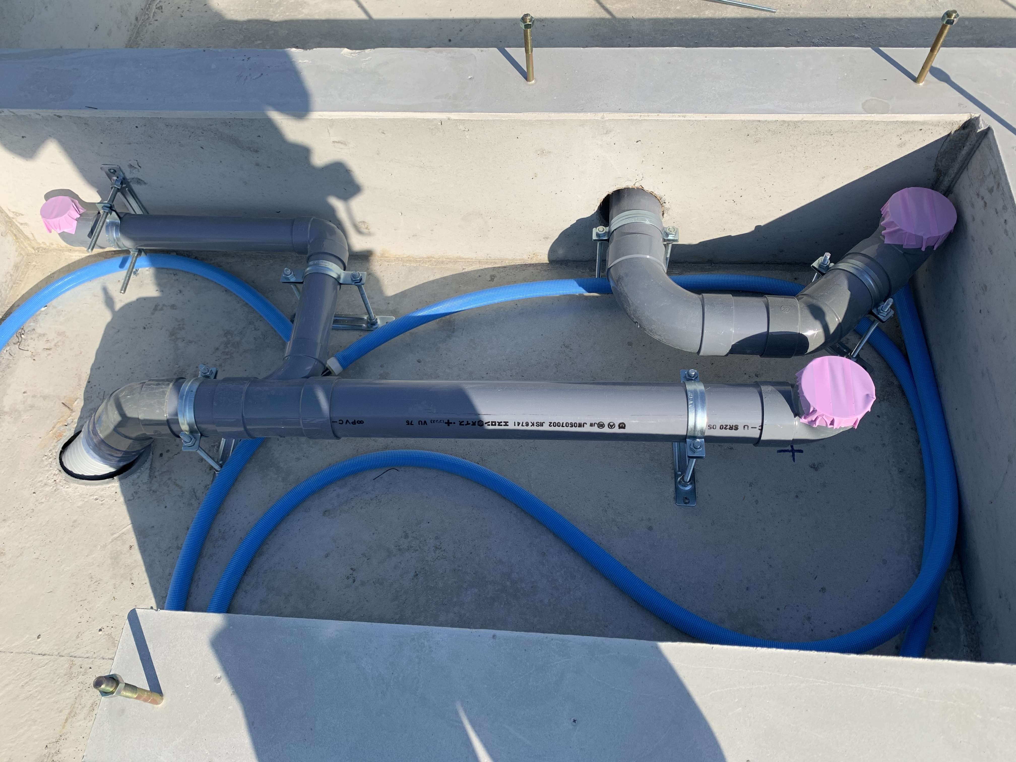 浄化槽が入る現場なので浄化槽までの外部配管をし、基礎中の転がし配管を終わらせて来ました!
