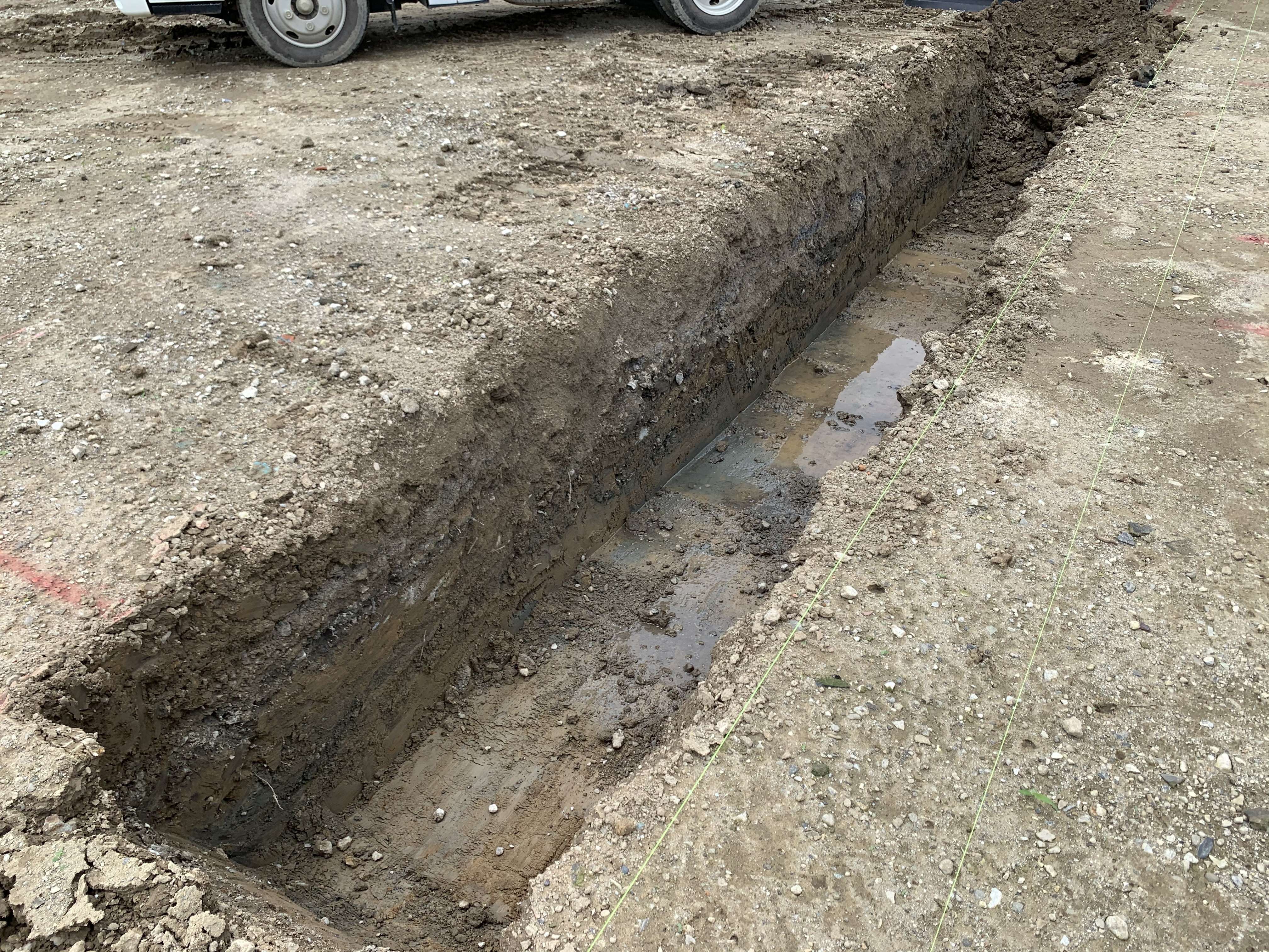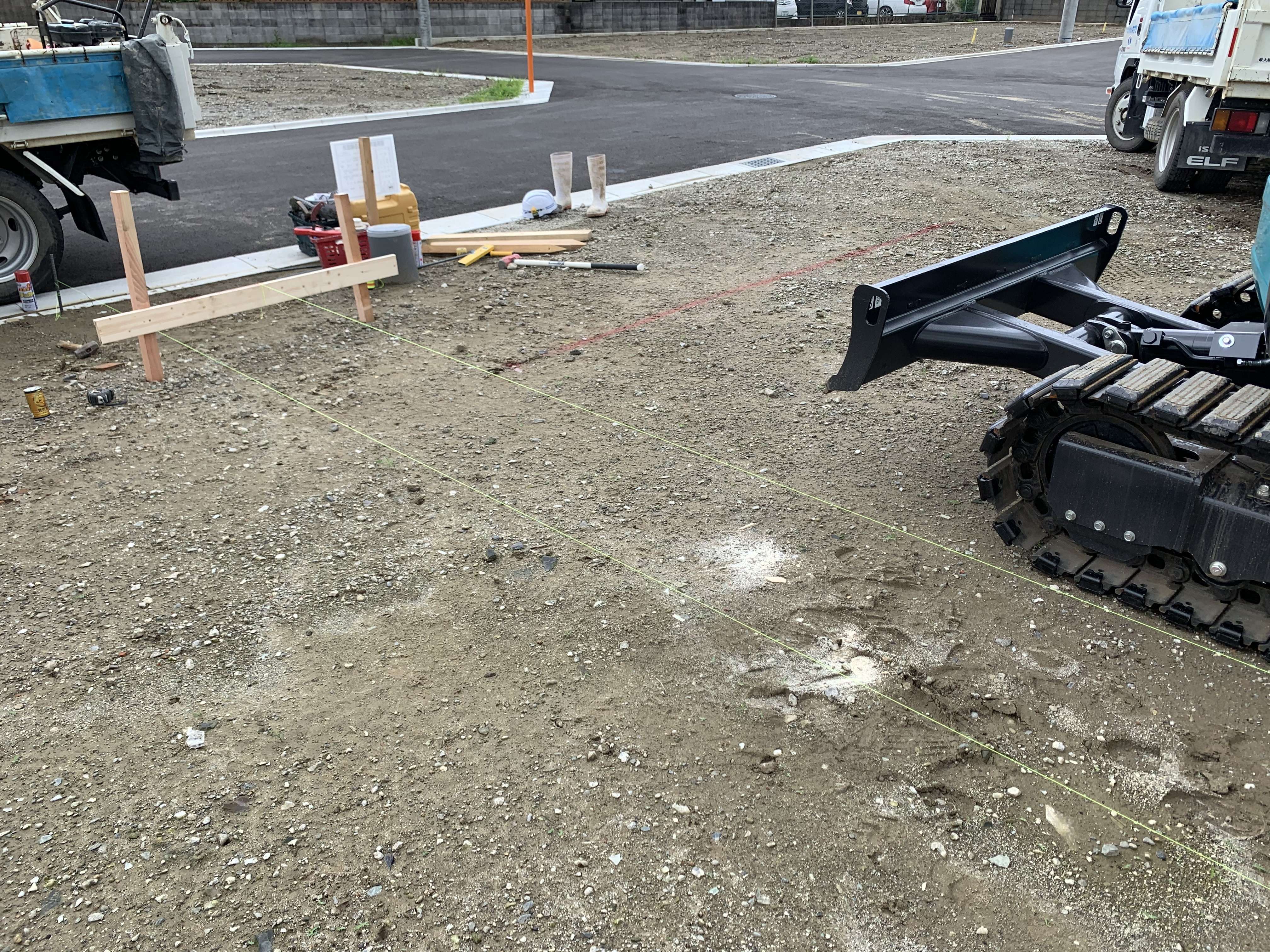 墨出しから水糸張り、堀方の深さや幅等も細かく、今日は堀方の半分くらいで終了しました!